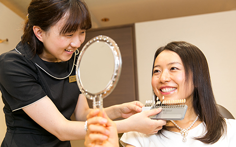 ボーテ式ホワイトニングのセラピストは、国家資格を持つ歯科医師・歯科衛生士のみ取得できます。しかも、全員が研修を受け、厳しい試験に合格する必要があります。こうしたプロフェッショナルが、歯科医院専用の薬剤を使用してホワイトニングを行うことで、一人ひとりの希望する白さを目指せるのが特徴です。ホワイトニングについての疑問なども、お気軽にご相談ください。