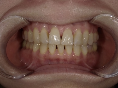 40代女性 ホワイトニングにずっと興味を持っていて、お子様からの一言がきっかけでご来院。 初診時シェード:右上1 D4、右下3 A4 目標シェード:BL3施術内容